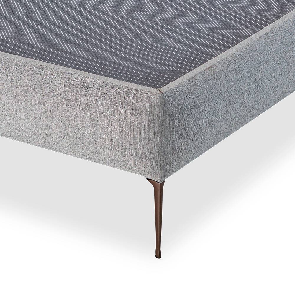 Com altura aproximada de 37 cm, o box está disponível com pés fixos em madeira maciça ou opção de rodízios, que facilitam o transporte e a movimentação. O revestimento em tecido premium proporciona um acabamento sofisticado e durável, que valoriza a decoração de qualquer quarto.