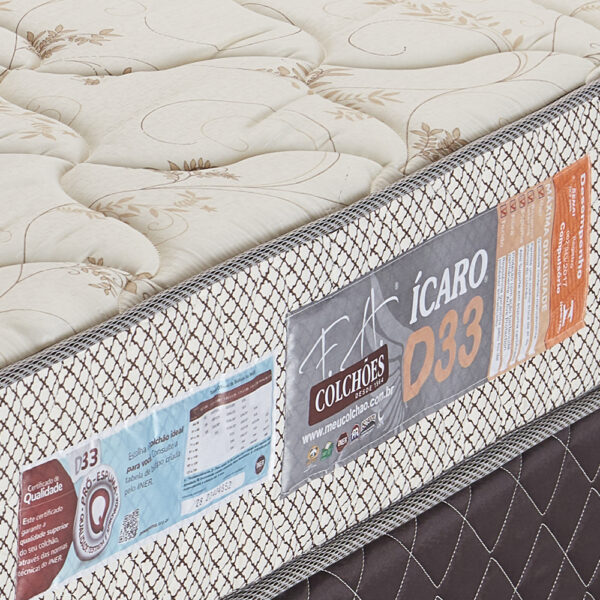 O Colchão Ícaro D33 é a escolha ideal para quem busca conforto, firmeza e proteção contra alergias. Produzido com espuma D33 de alta densidade, garante o suporte perfeito para o corpo, sendo indicado para pessoas de até 100 kg, mantendo a postura correta e proporcionando muito mais durabilidade.